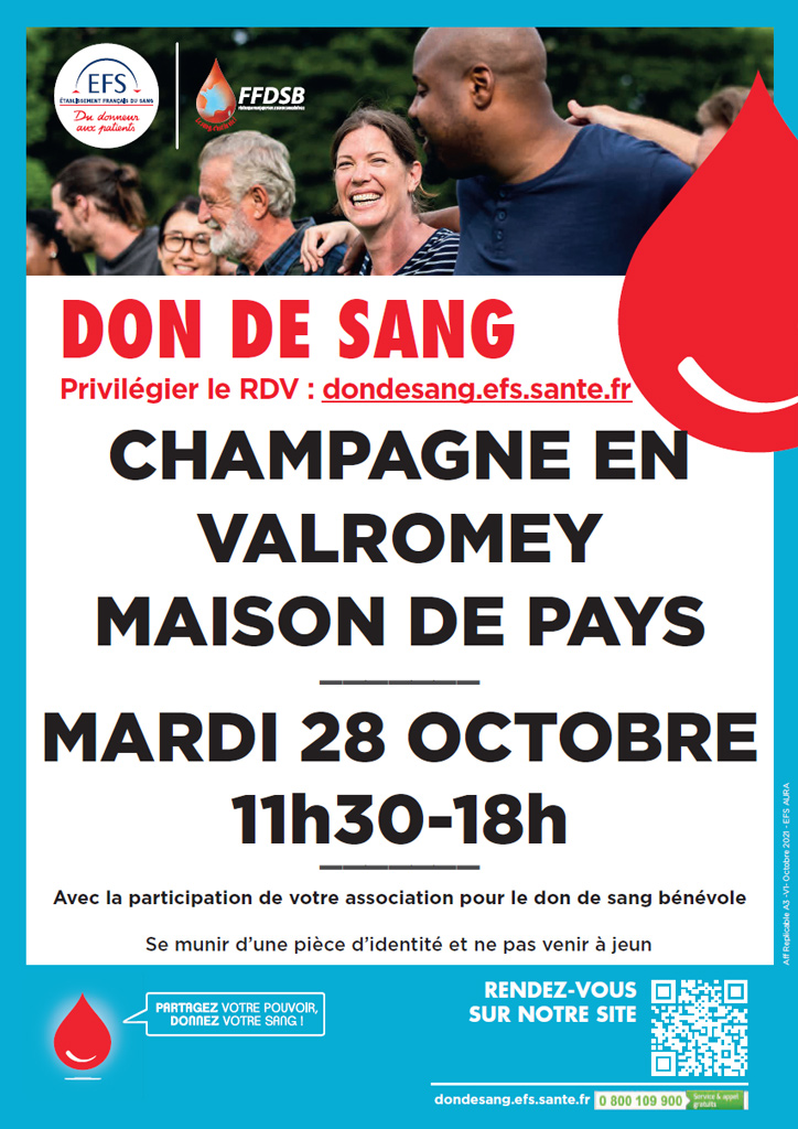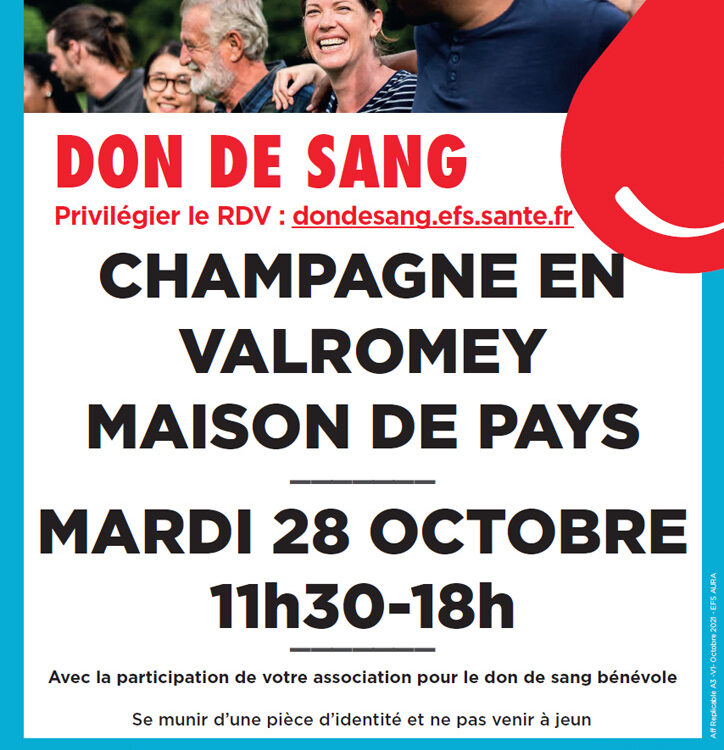 Champagne en Valromey – 18 octobre 2022 – Donnez votre sang, c’est important !